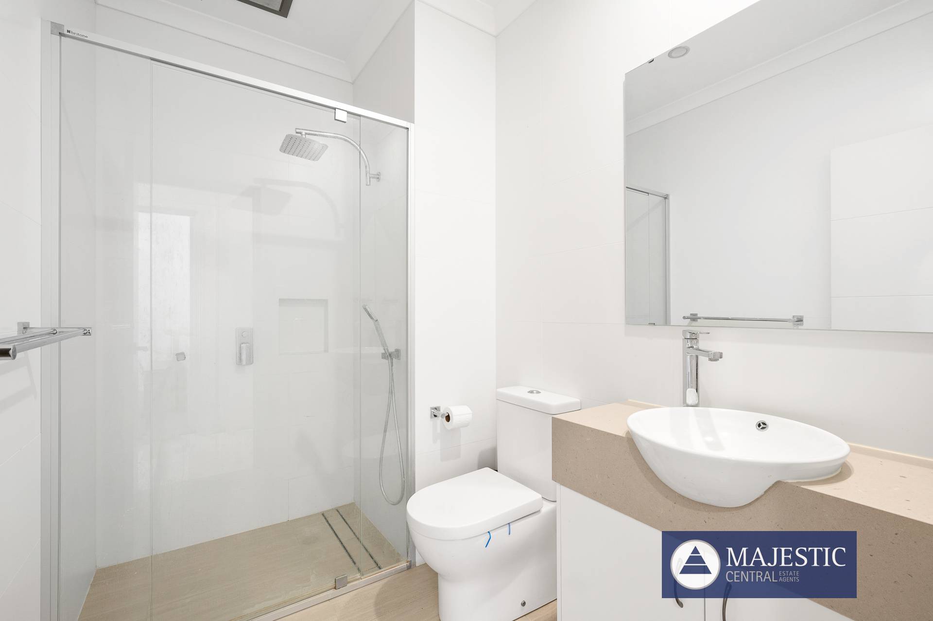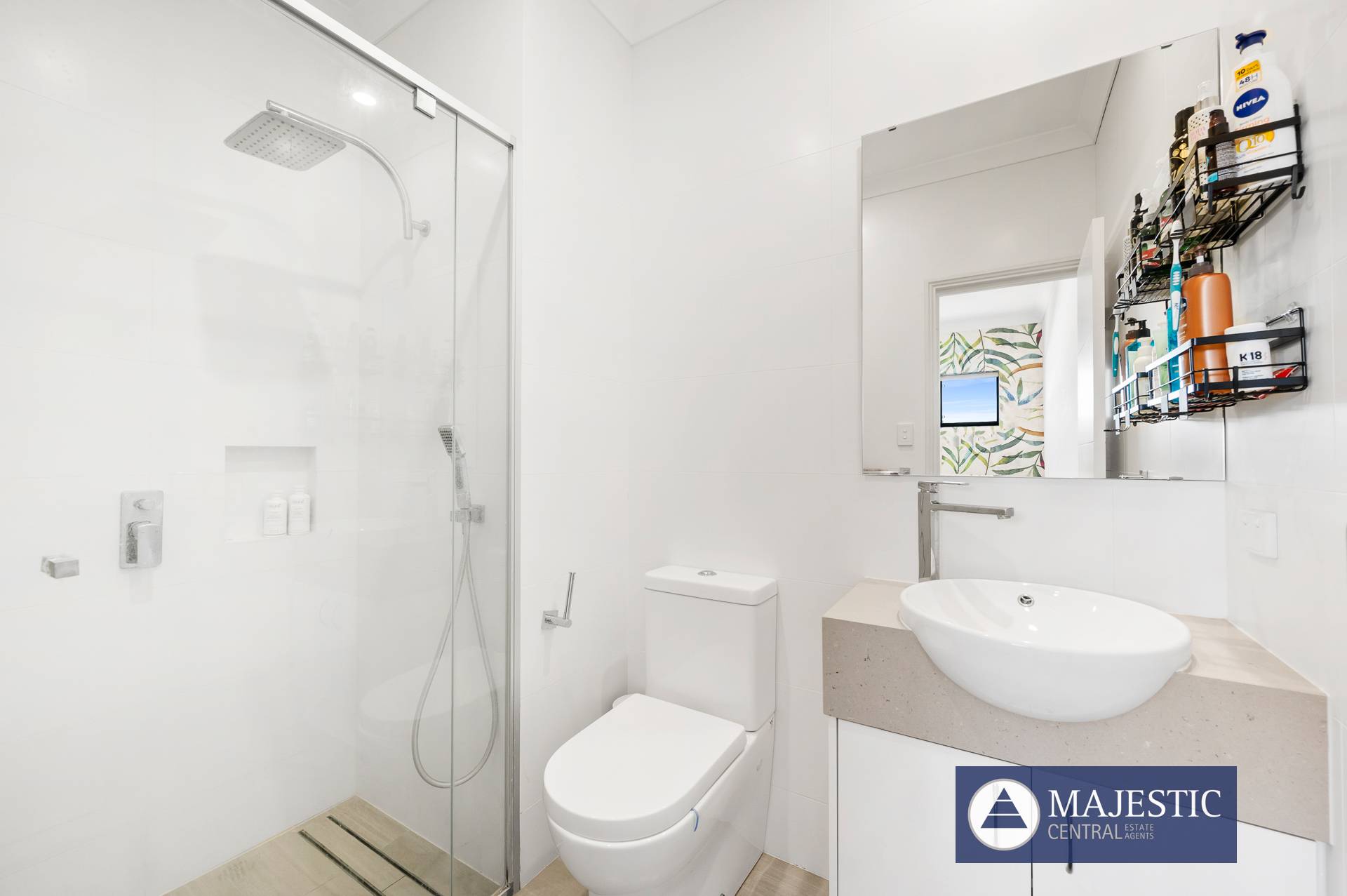 - Spacious 2nd bathroom and ensuite with floor to ceiling matt white ties, feature floor tiling, quality tapware, large rain shower with mixer & additional handheld shower