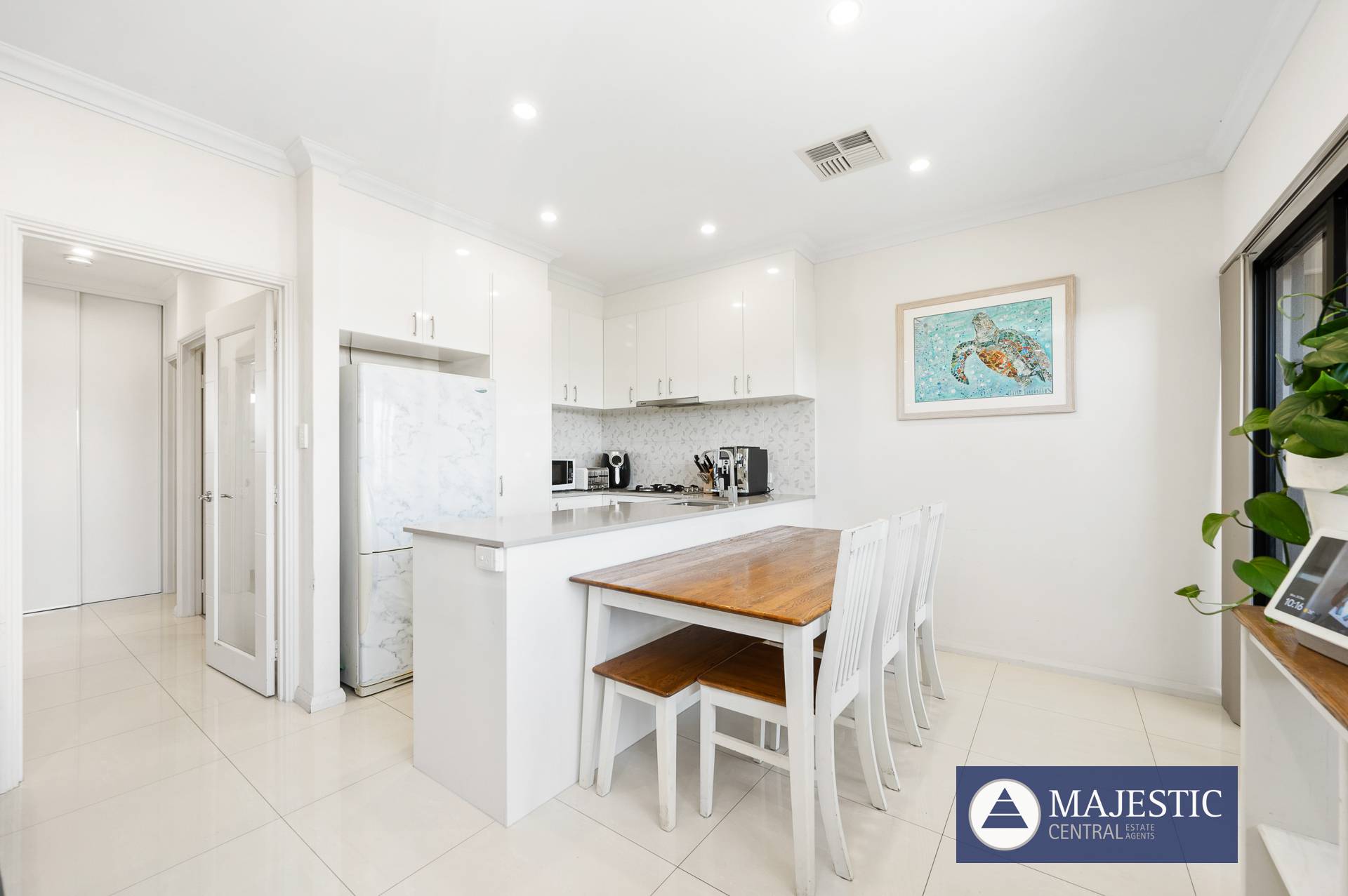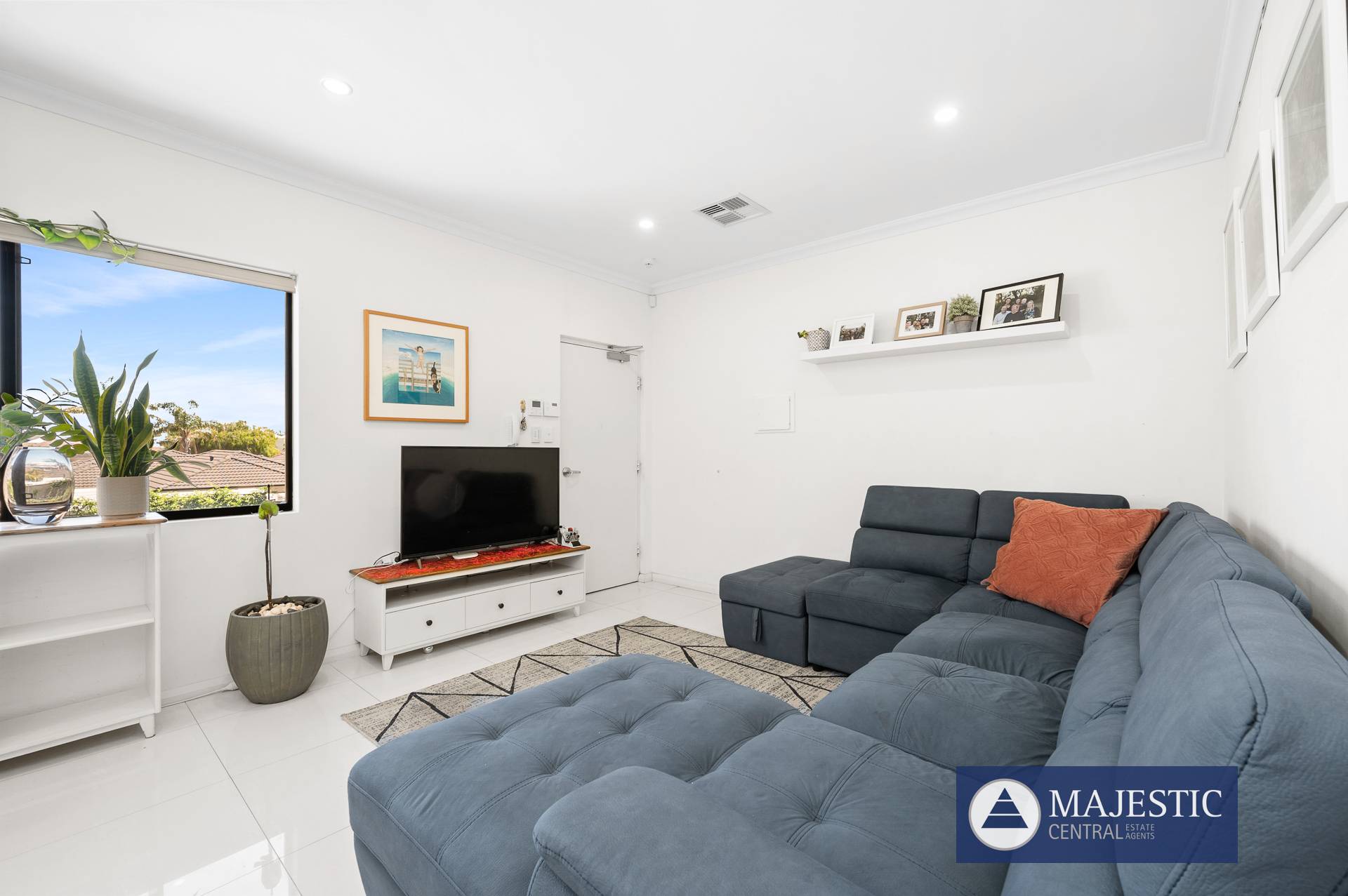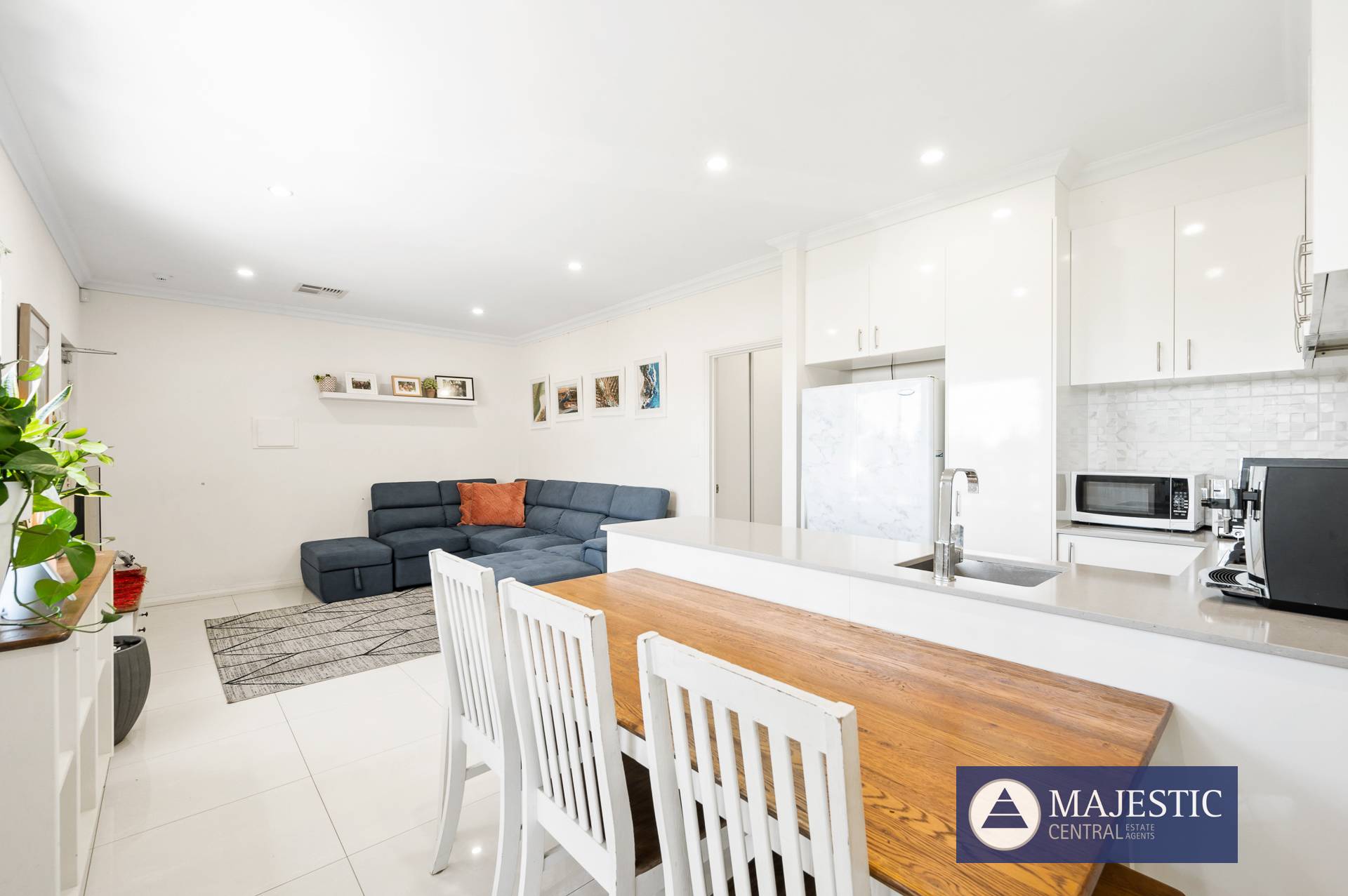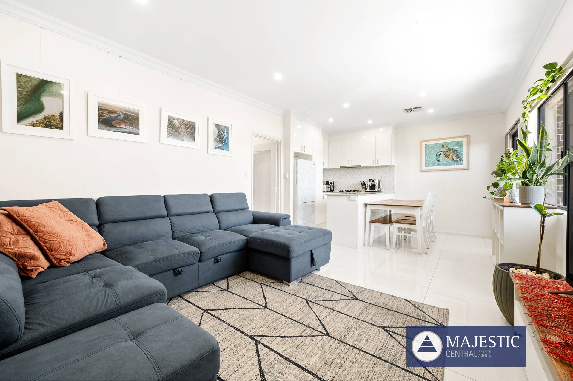- Large north facing open plan living with room for full sized lounge & dining suites