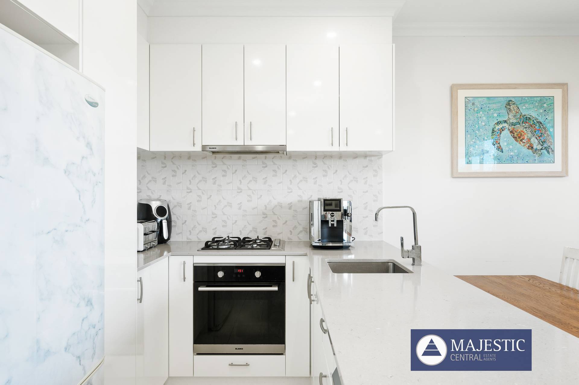 - Kitchen with stone tops, mixer taps, extra power points, soft close under bench and overhead cupboards, quality BLANCO appliances, gas cooktop, feature tiled splashback, pantry & fridge recess with plumbing for ice & water