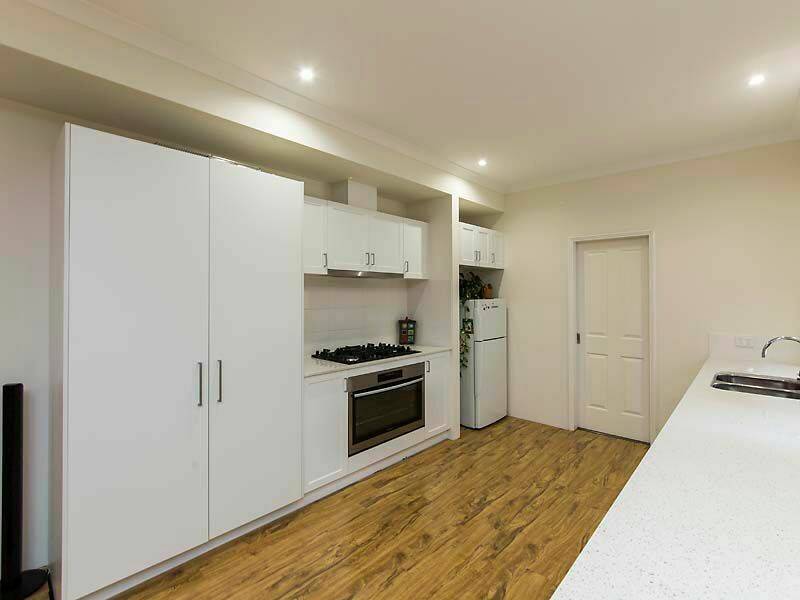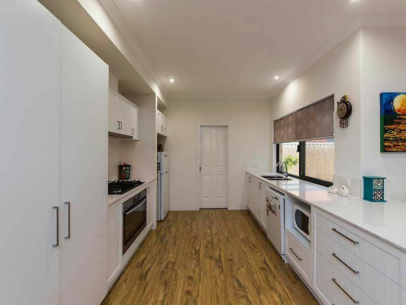 - The large kitchen is designed around performance, convenience and looks meaning you'll never miss a beat no matter how big or small the occasion. Fitted with stainless steel gas hotplate/oven, dishwasher generous stone bench tops, double sinks, breakfast bar and quality cabinets with an abundance of storage.