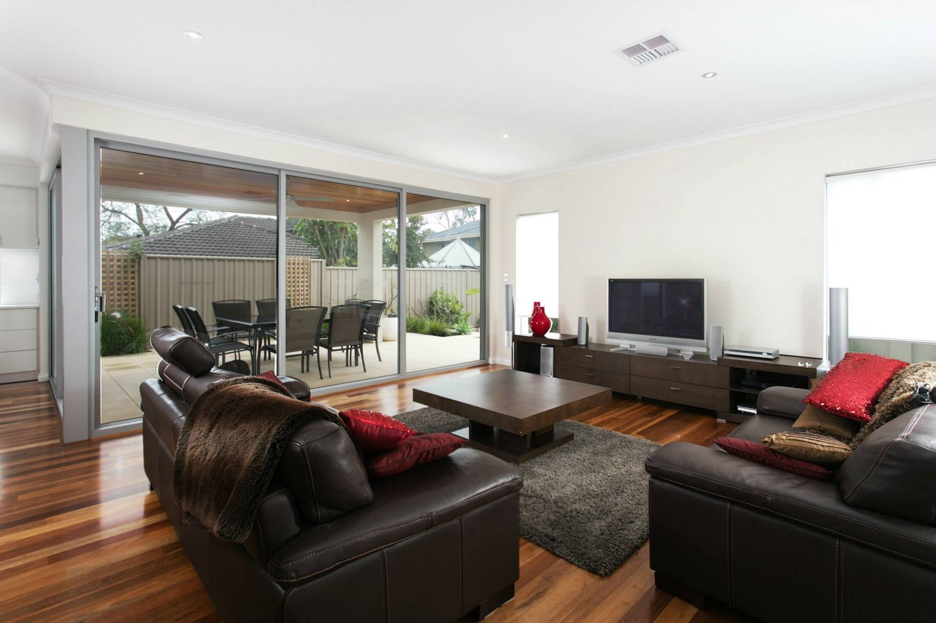 Modern & huge family double storey home with 3 bedrooms (all with robes) + study & 2 bathrooms plus 3 separate living areas in a quiet location.