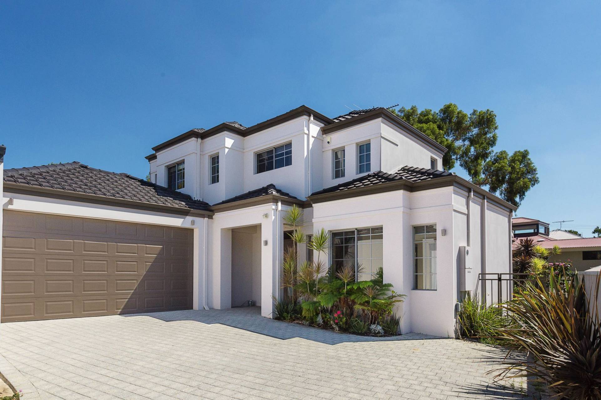 Very modern and very spacious double storey home with a built up area of approximately 319sqm in a cul-de-sac location opposite parkland all in a private setting.