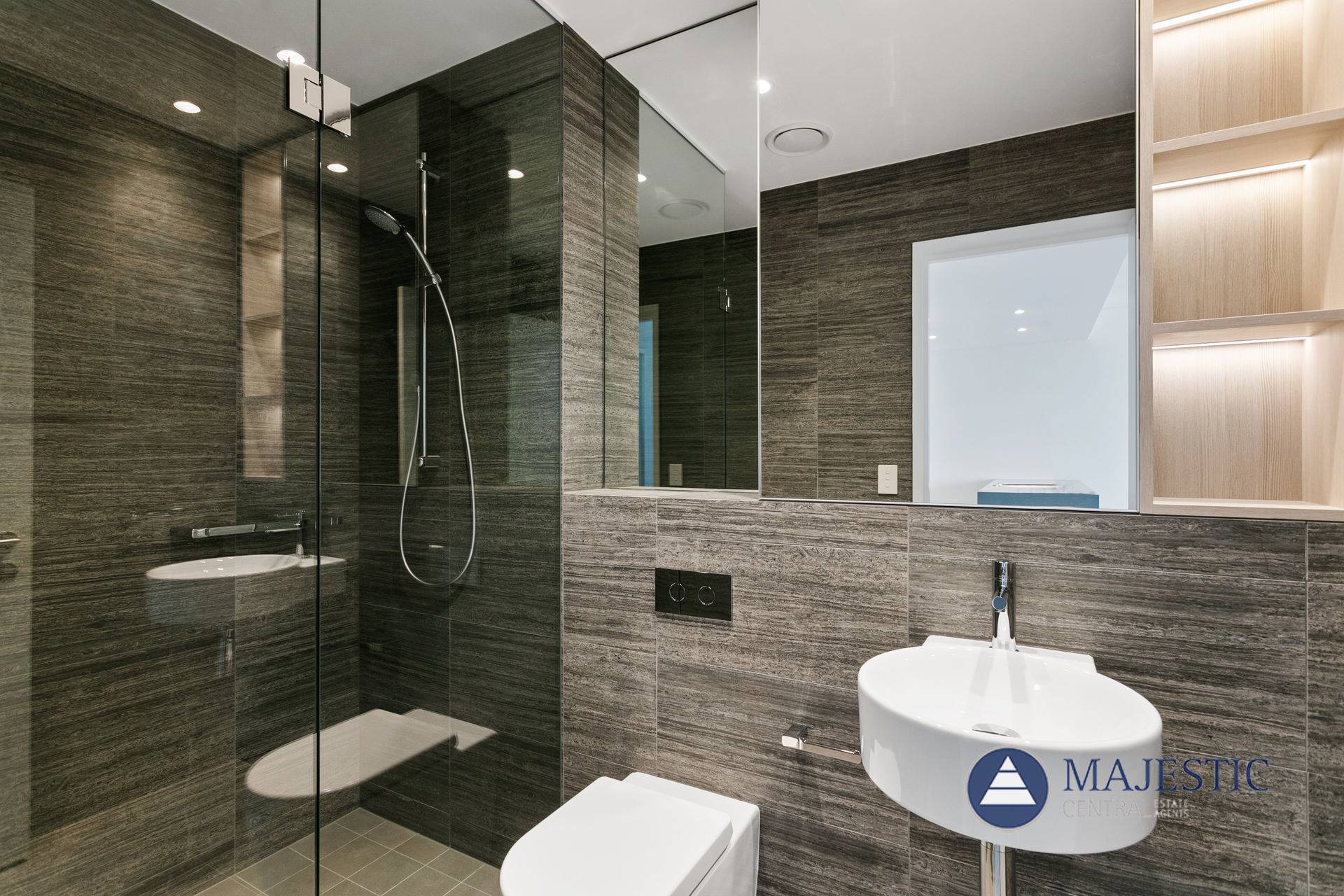 The Architect’s progressive design and commitment to detail is further showcased in a fully tiled bathroom, quality and textured finishes throughout, shadow line ceilings, balcony facing North and the building’s elevation.