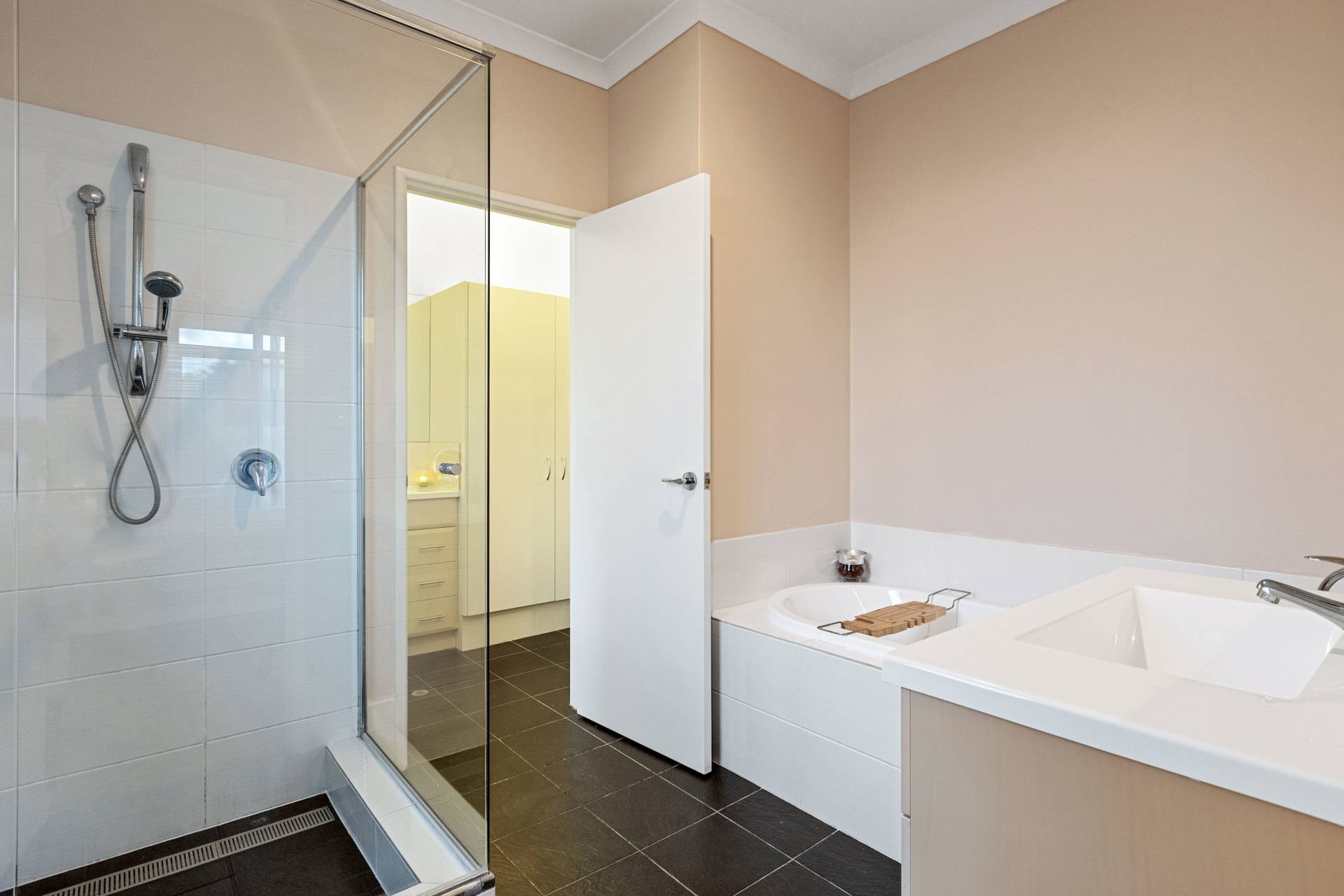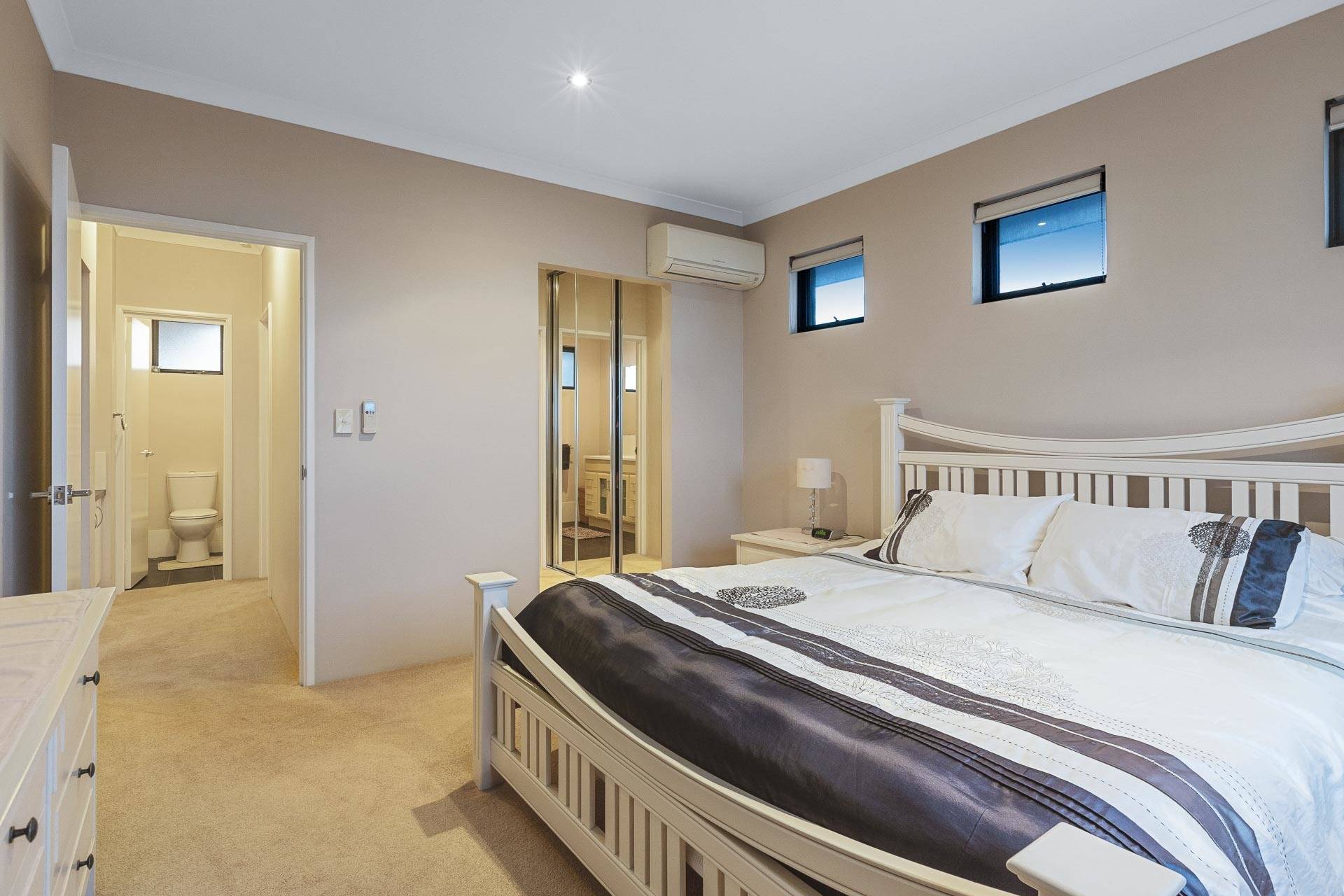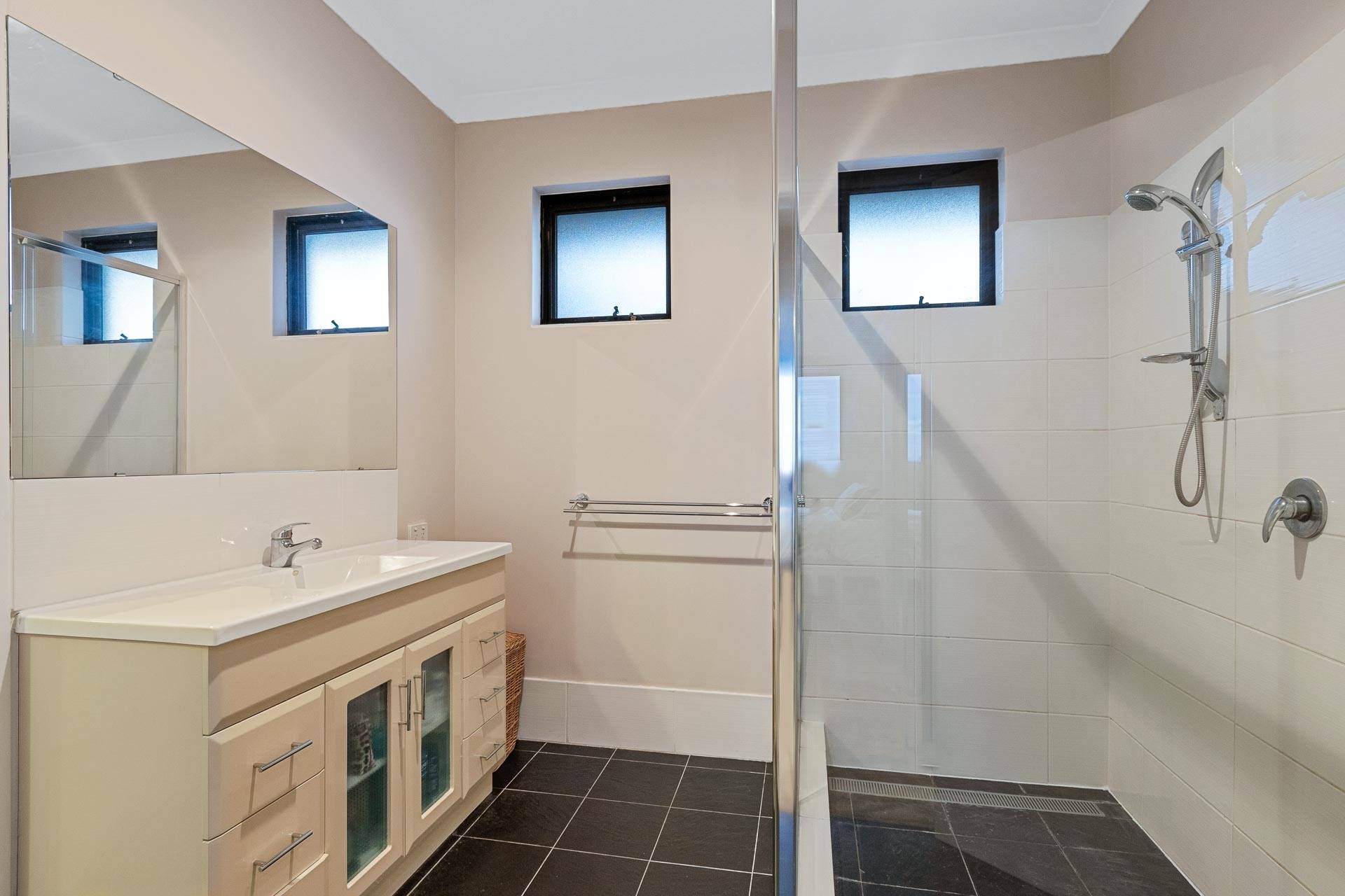 There are three downstairs bedrooms of which two are at the rear of the property and have ceiling fans and full-length mirrored robes. The third or guest bedroom has triple robes and a semi ensuite and separate powder room.