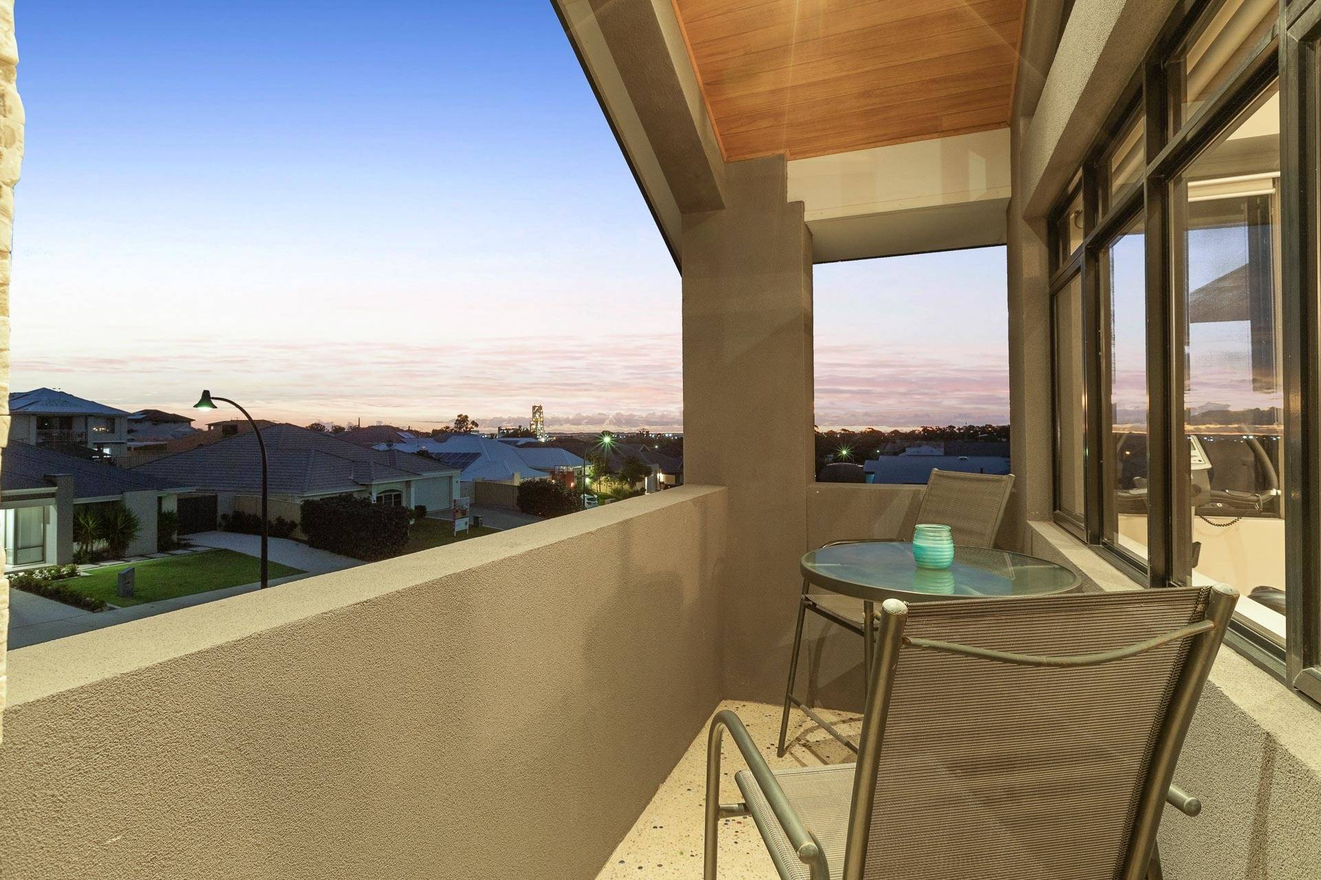 No lawns to mow here as exposed concrete and cool artificial lawn make up the entire outdoor areas so you can spend your time off enjoying the views.