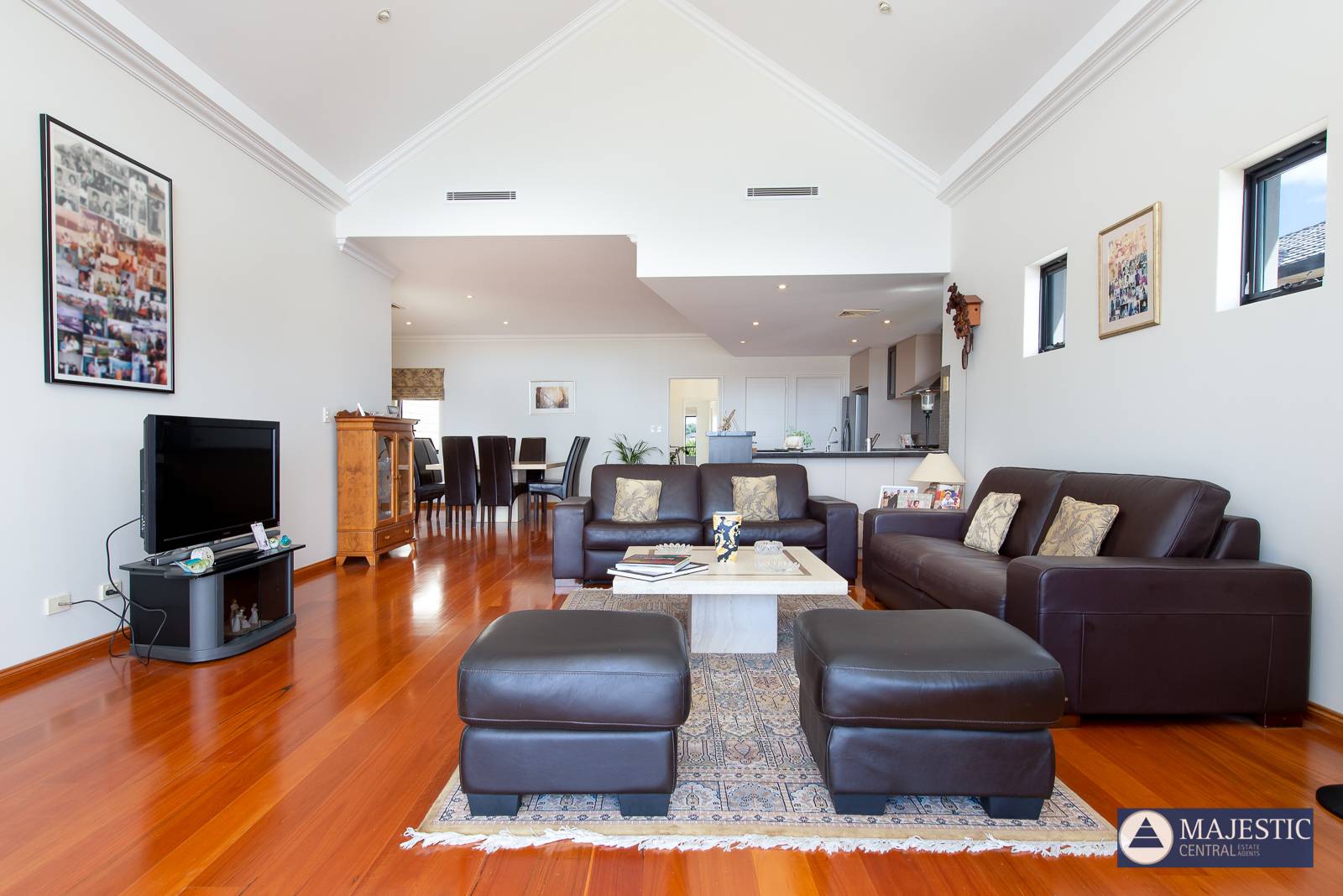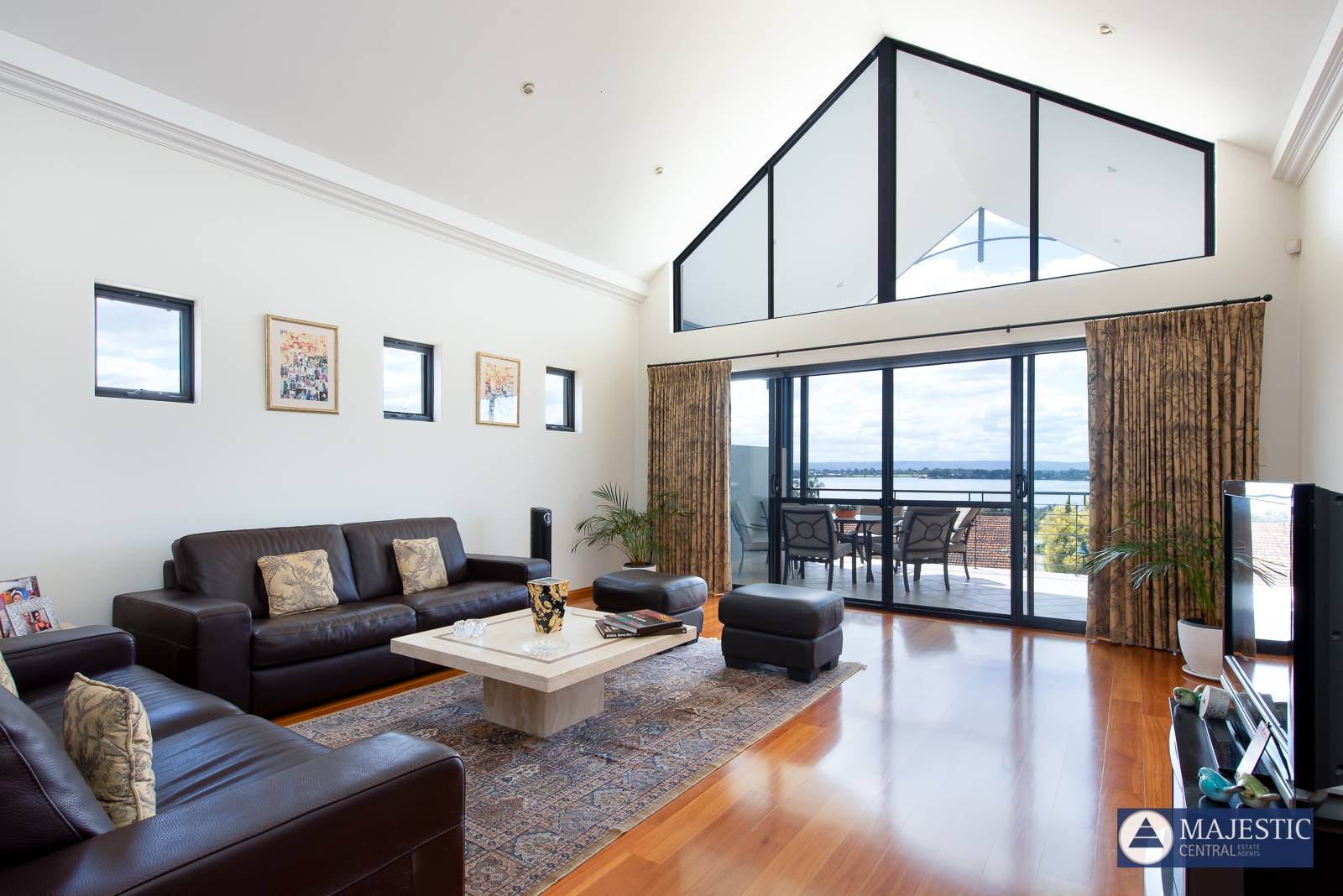 - Oversized open living space with cathedral ceilings carrying through to the al fresco