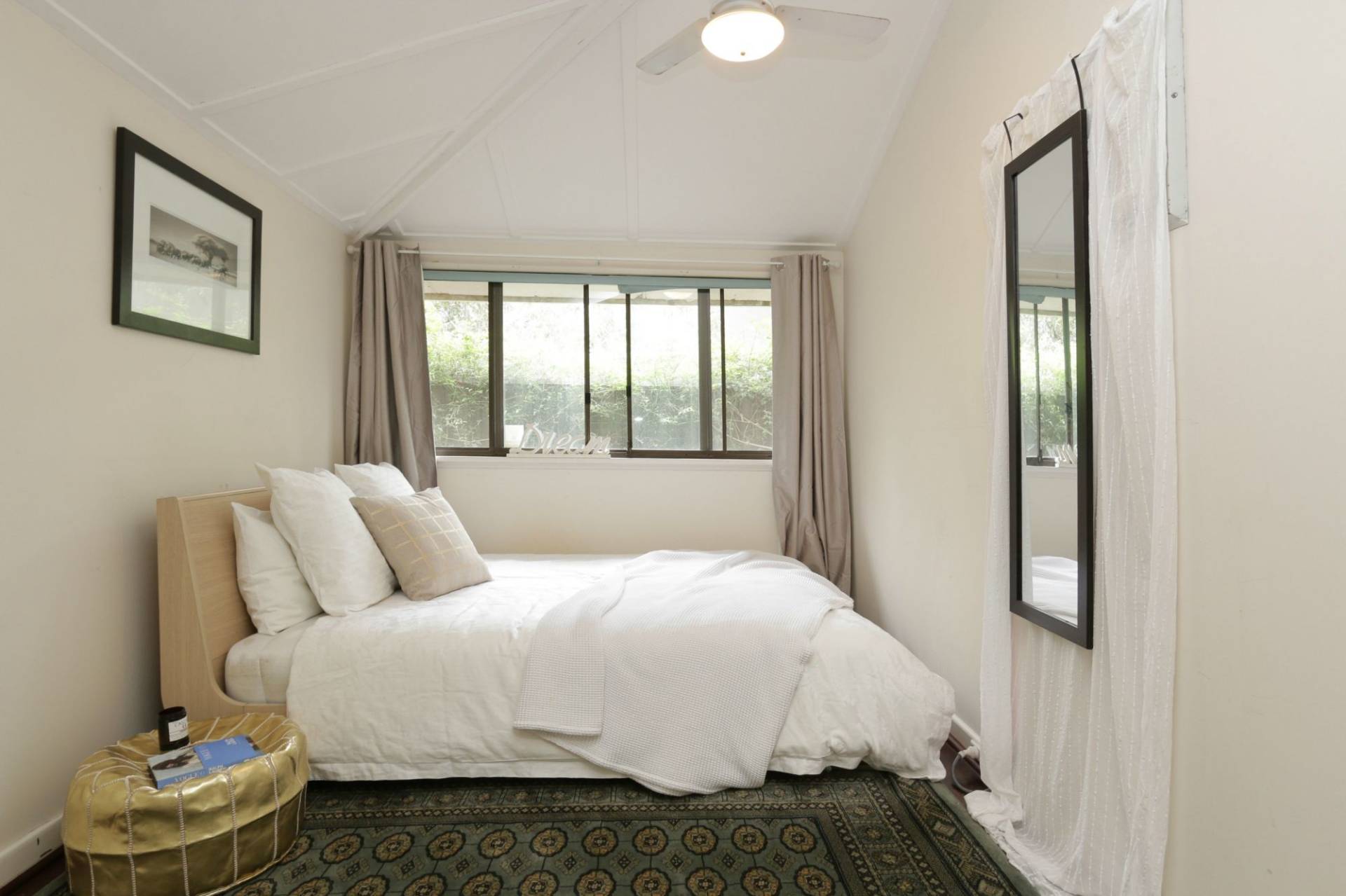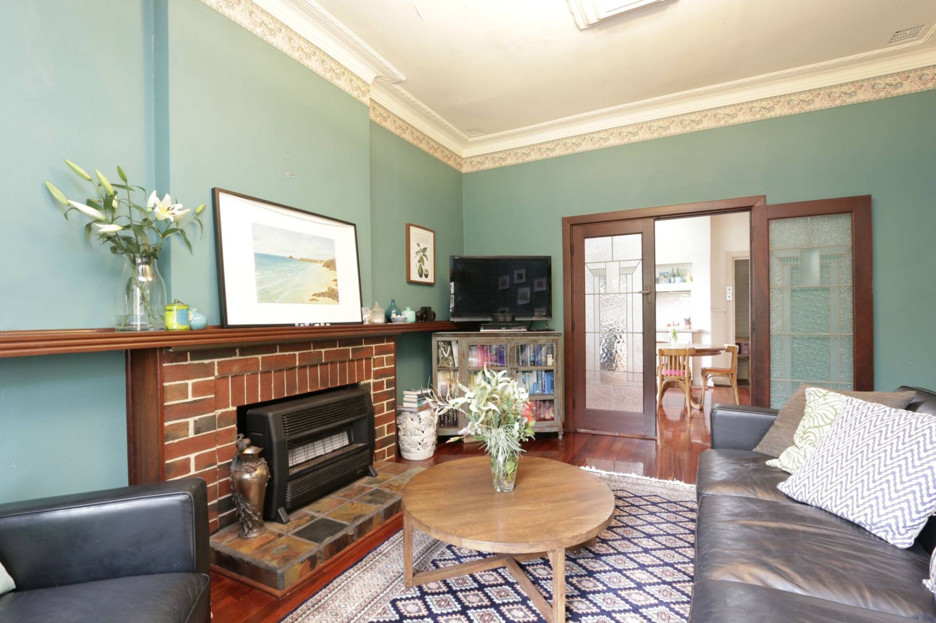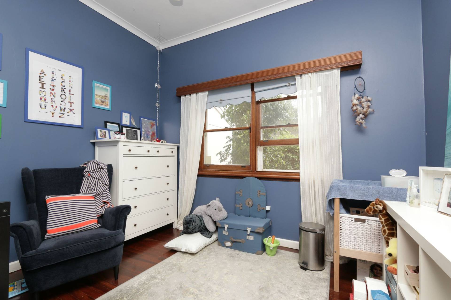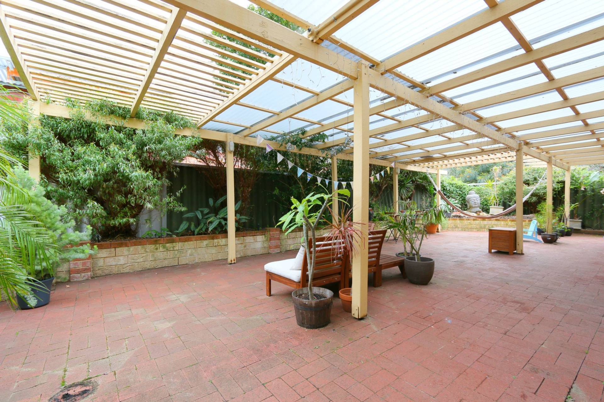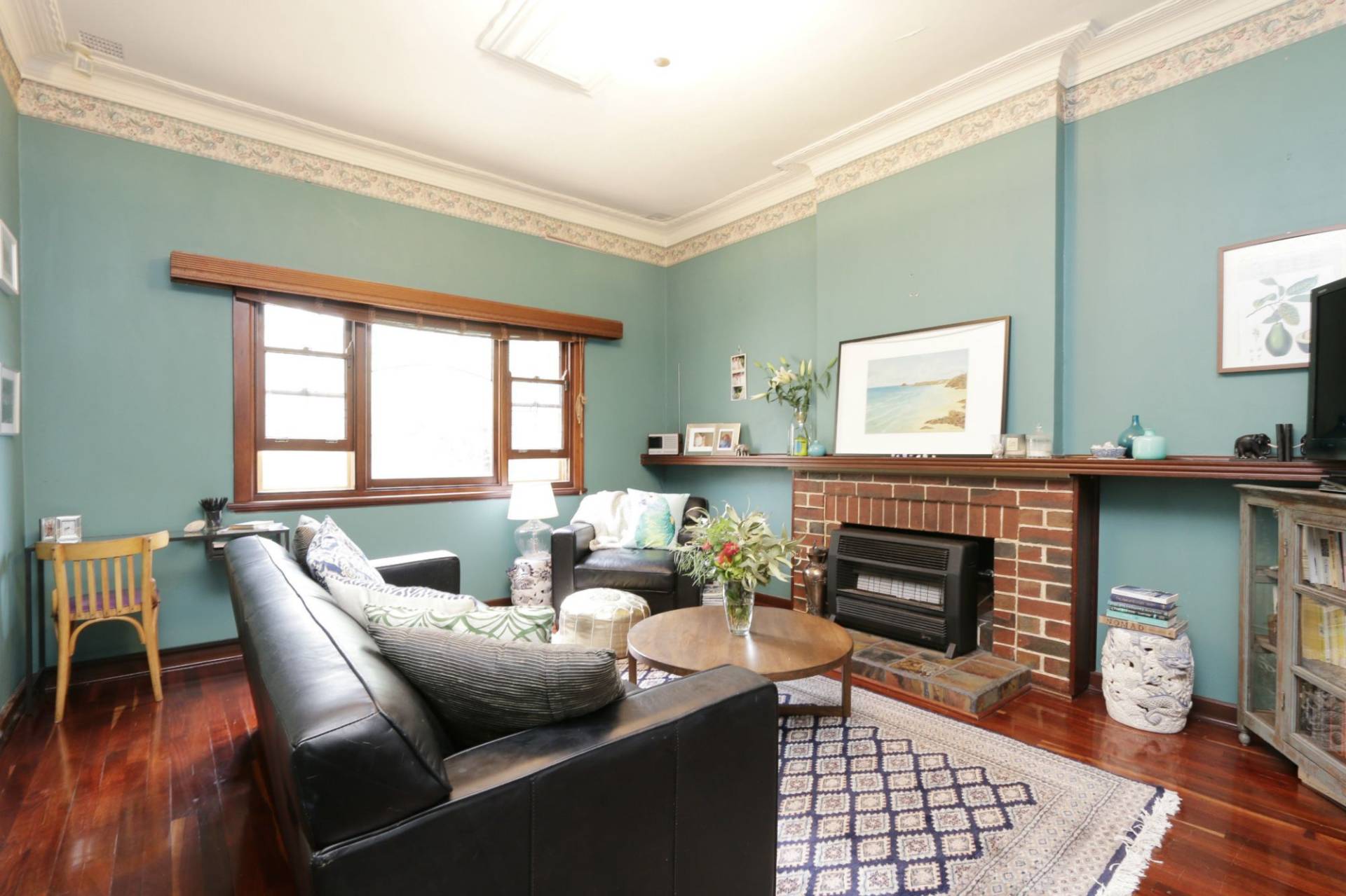 3 bedrooms, wide hall, separate living room with gas heating, extra high ceilings, floorboards, spacious kitchen with ample cupboards, bathroom with bath tub, air-conditioning, alarm system, backyard with extensive alfresco area and single garage.