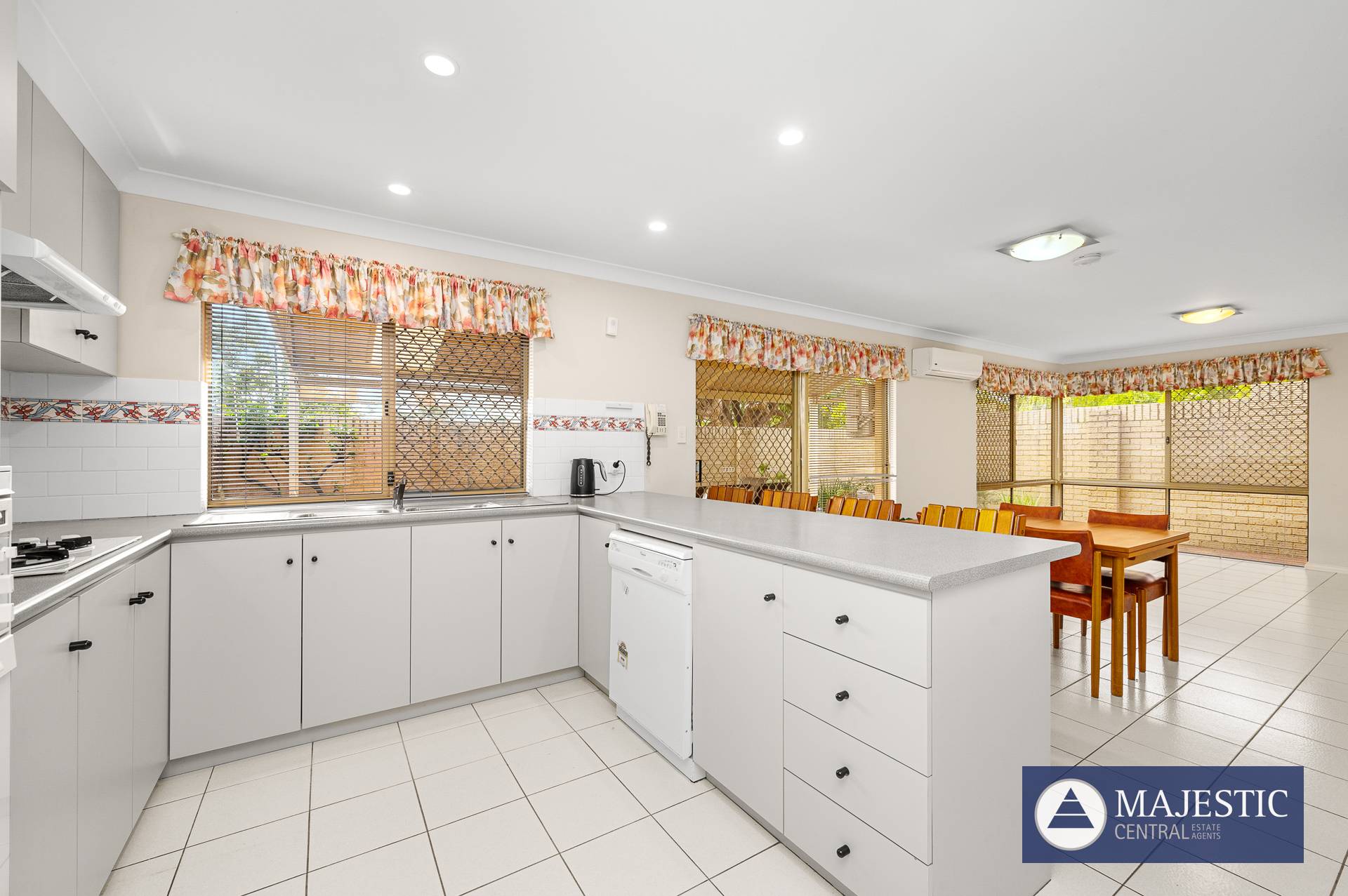 Beyond its homely exterior, this spacious home boasts every modern comfort. The sunken lounge creates a sense of spatial separation from the three bedrooms preserving the privacy of its residents whilst its high ceilings retain its stateliness. Seamlessly integrating with the familial lounge room space, the kitchen boasts a generous countertop that doubles as a breakfast bench, with sliding doors connecting the culinary space to an immaculately maintained outdoor patio. This functional kitchen overlooks the outdoor entertainment area and is the ultimate in indoor-outdoor living, perfect for families with an active social agenda.